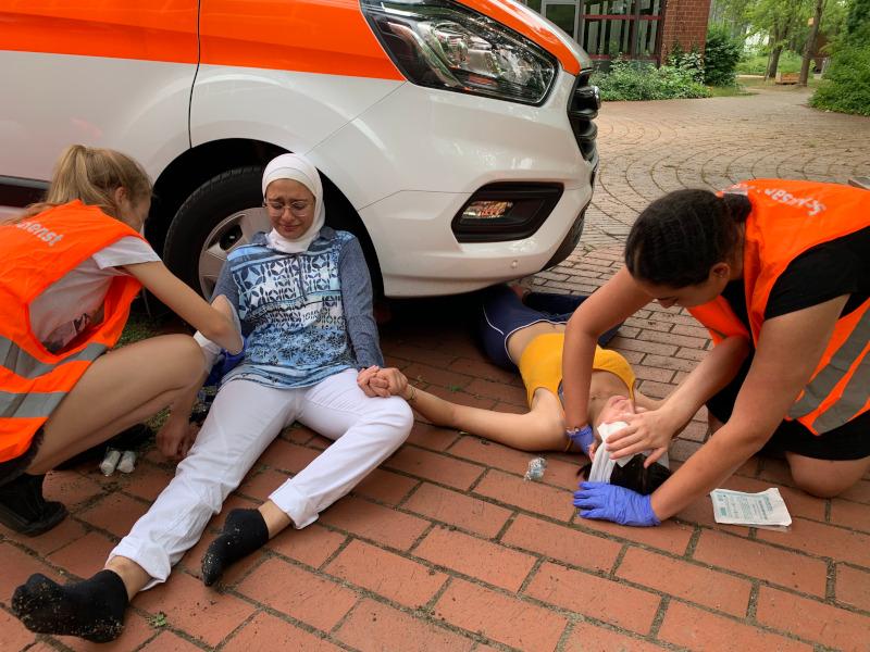 Den Abschluss der Ausbildung bildete die Simulation eines Unfalls mit mehreren Verletzten. Die Darstellung der Verletzten war dabei so realistisch, dass sogar die Ausbilderin selber irgendwann nicht mehr zwischen Wahrheit und Fiktion unterscheiden konnte.