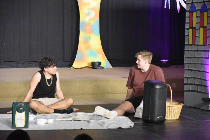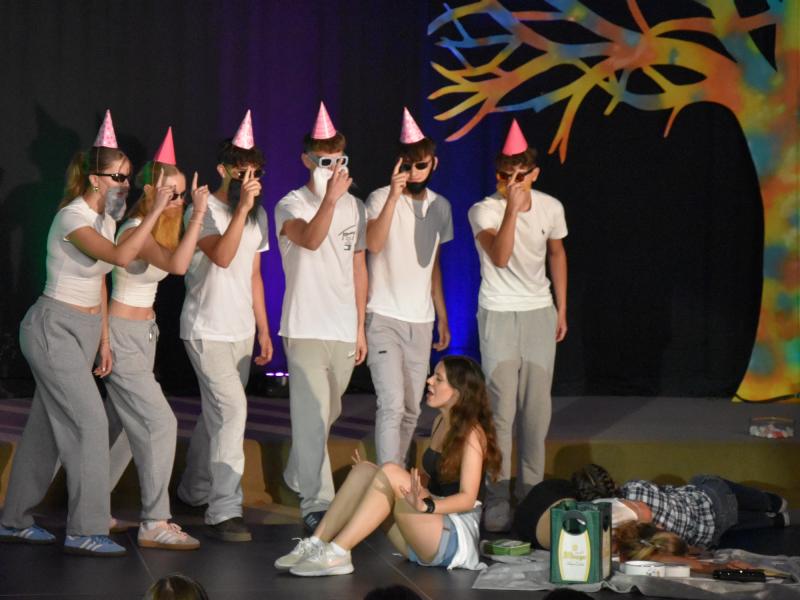 Tatkräftig unterstützt durch die Licht- und Ton-AG unter der Leitung von Frau Weber treffen nun diese beiden verschiedenen Welten aufeinander, und es passiert – vor allem nach dem Genuss von rauschfördernden Pilzen (hier erklärt sich auch die FSK ab 16 Jahren und der Untertitel „Ein Trip ins Märchenland“) – einiges Unvorhergesehenes: