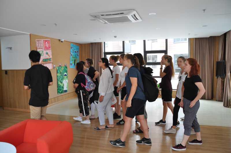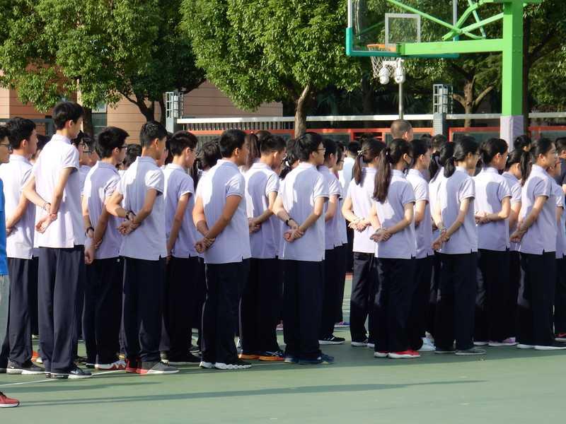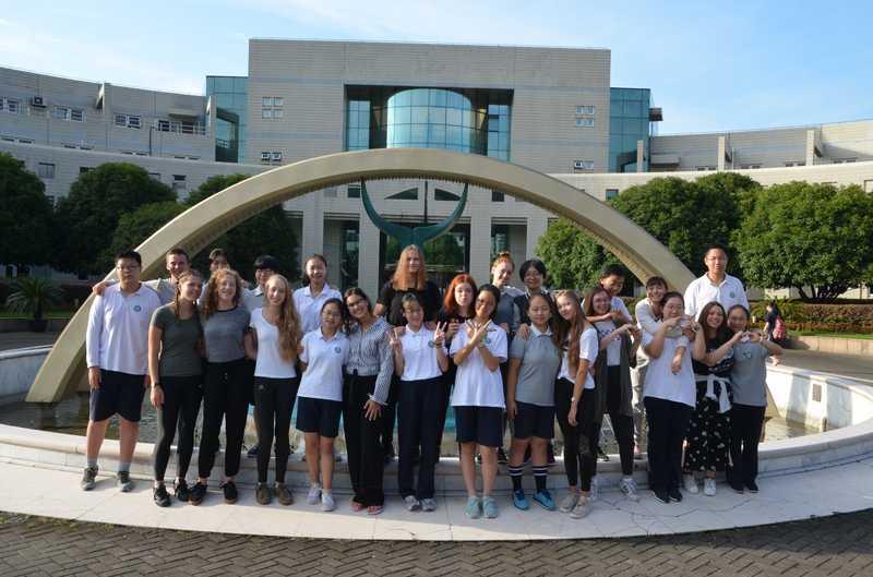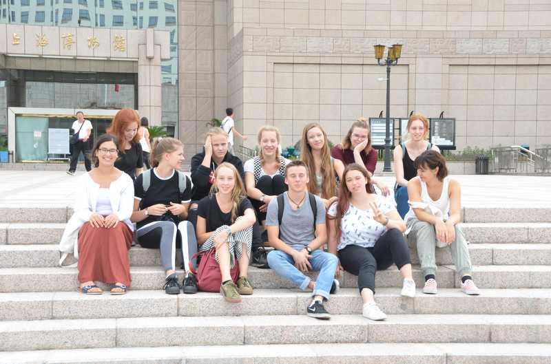 Mit dem Schnellzug fuhren wir von Peking gefühlt „einmal quer durch China“ nach Shanghai, dem Standort unserer Partnerschule. Wir trafen unsere Partnerschüler wieder, die wir bereits bei ihrem Besuch in Nieder-Olm kennengelernt hatten und verbrachten einige Tage im Internat, wo wir gastfreundlich und mit viel chinesischem Essen begrüßt wurden. Bis auf einen Tag aßen wir nie bei den Schülern, sondern in der Lehrerkantine. Wenn wir nicht gerade die Stadt erkundeten, in der Metro von 1 – 14 zählten, damit niemand verloren geht, oder Läden durchstöberten, begleiteten wir unsere Partnerschüler durch ihren Schulalltag. Dieser unterschied sich im Wesentlichen kaum von unserem. Die größte Ausnahme war hierbei wohl noch die Morning Ceremony, eine Versammlung aller Schüler und Lehrer, jeden Morgen vor Unterrichtsbeginn um 7 Uhr morgens. Alle tanzten gemeinsam, wärmten sich auf und auch uns wurde die Choreografie beigebracht. Das Flaggenhissen in Uniform, untermalt von Musik hatte eine enorm beeindruckende Wirkung.