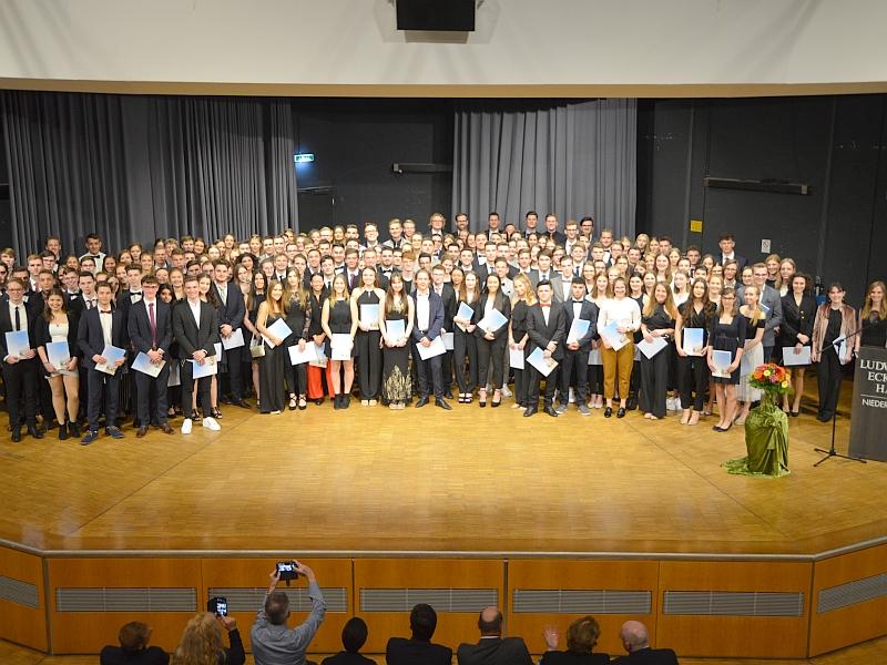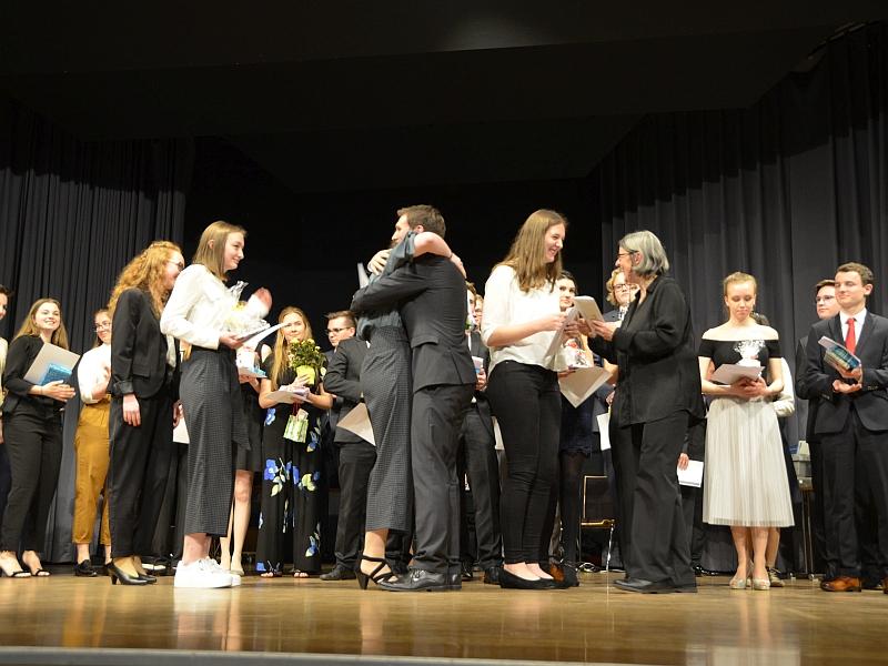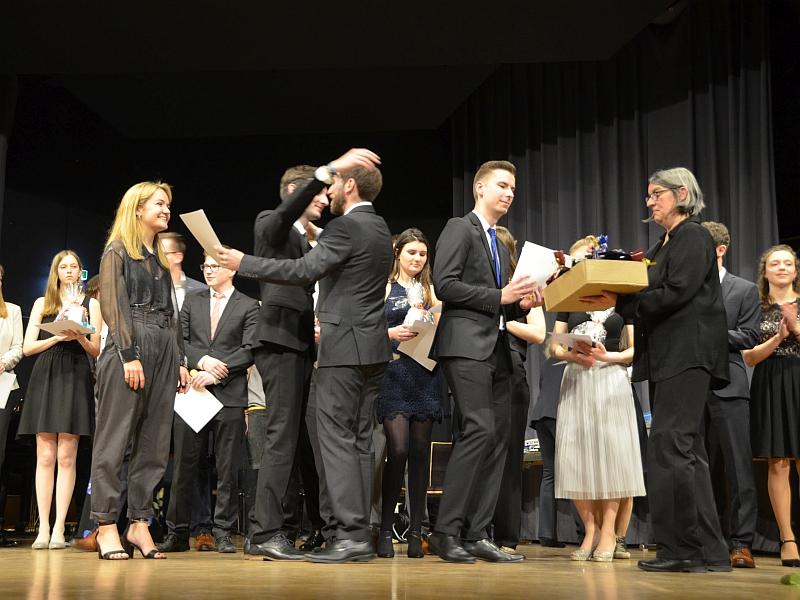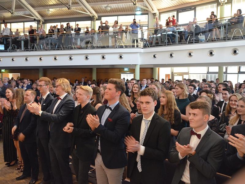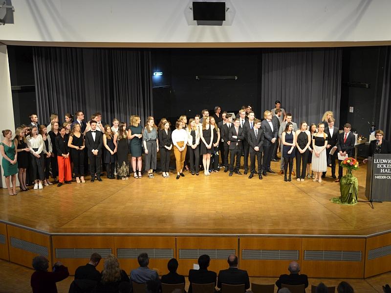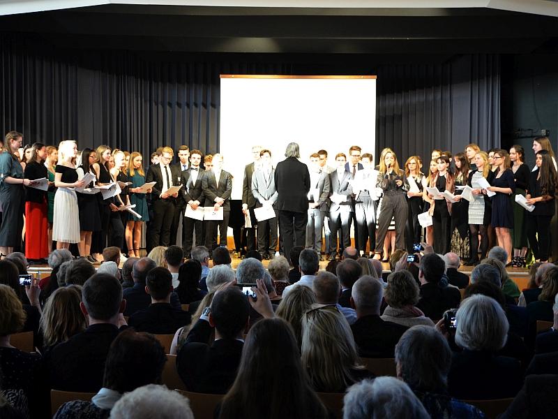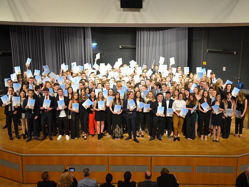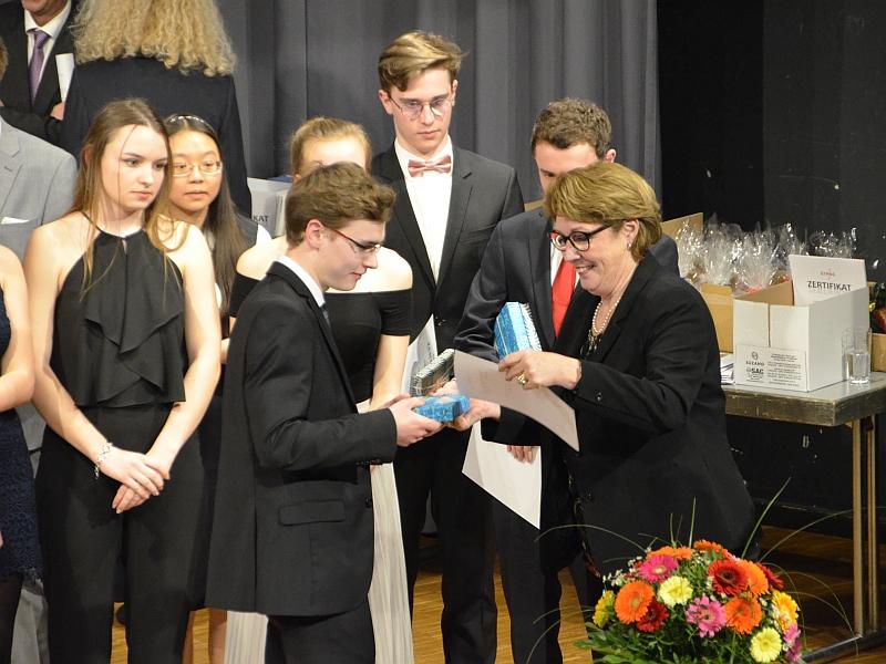 Zahlreiche Schülerinnen und Schüler erhielten wegen herausragender schulischer Leistungen und ihres Engagements innerhalb der Schule Preise und Auszeichnungen, bevor dann schließlich die Abiturzeignisse von der Schulleiterin und den Stamkursleiteren ausgegeben wurden.