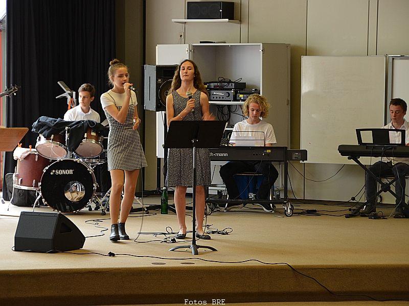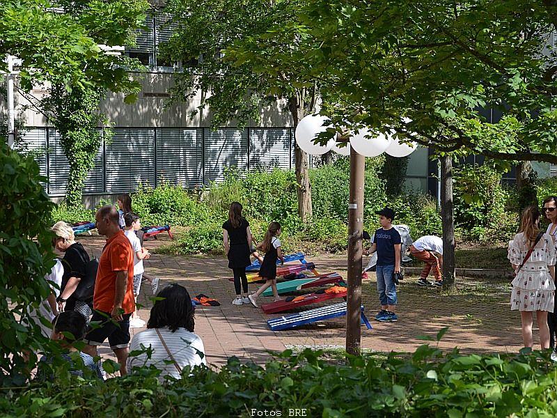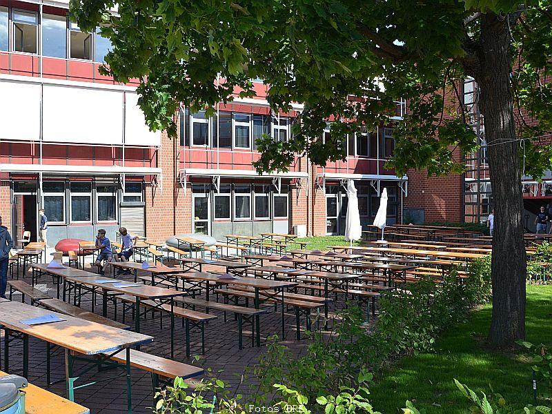 Den Ehemaligentreff im Anschluss an das Schulfest organisierte die Schulleitung gemeinsam mit dem Förderverein. Etwa 300 ehemalige Schülerinnen und Schüler sowie Kolleginnen und Kollegen genossen die schöne Abendstimmung, tauschten alte Schulgeschichten aus und konnten das jetzige Gymnasium bestaunen ... nach 40 Jahren ist vieles nicht mehr so wie zu den beschaulichen Anfangszeiten, die anhand von Fotos in einer kleinen Ausstellung zu besichtigen waren.