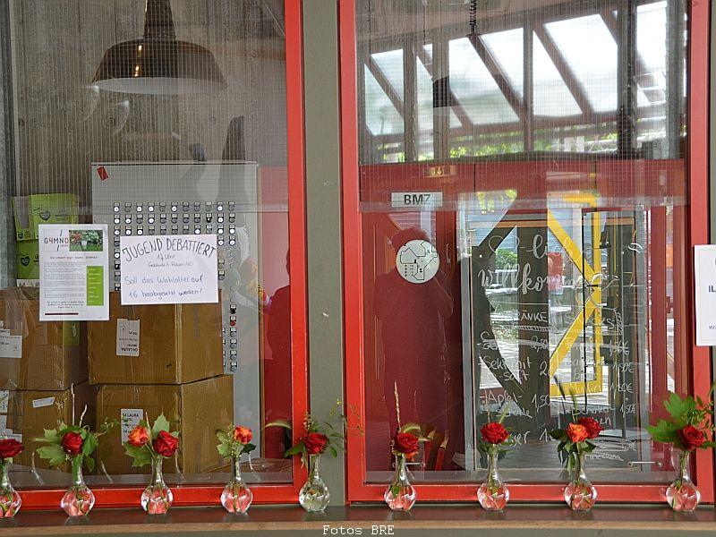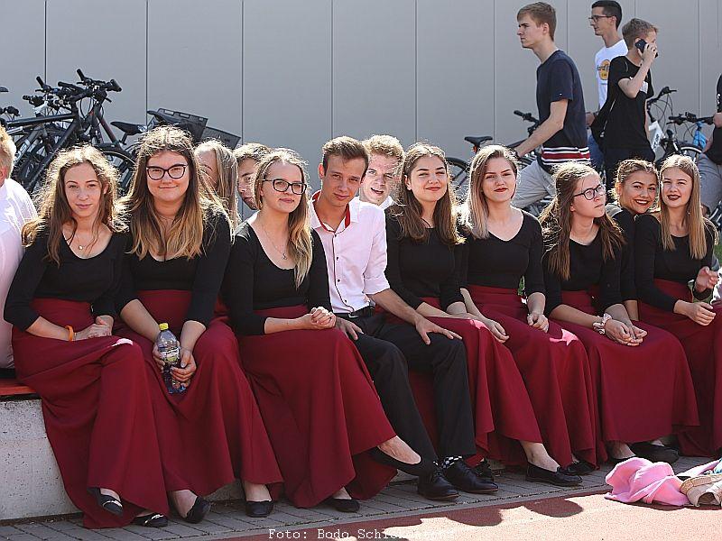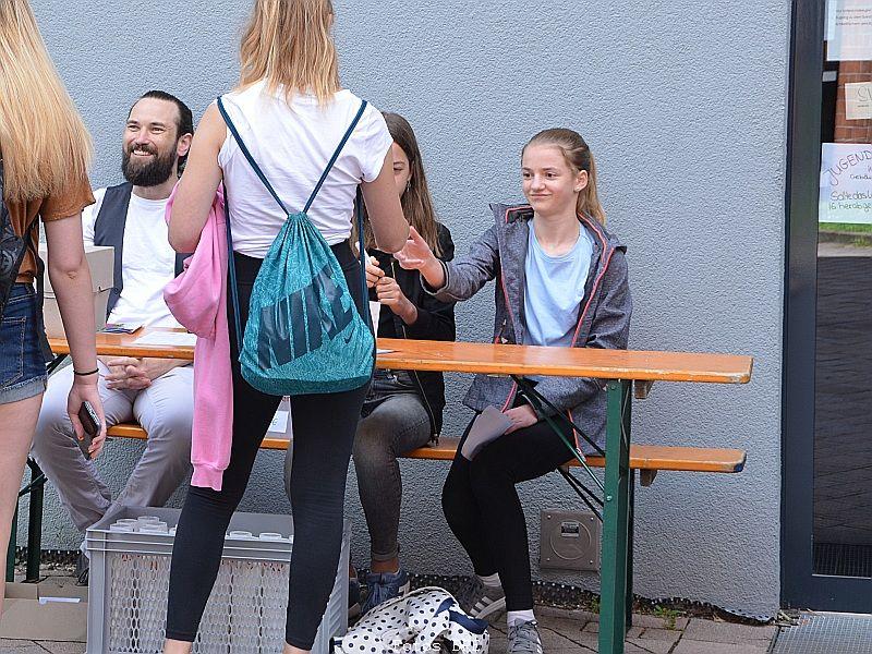 Noch lange vor den „friday for future“-Demonstrationen hatte das Organisationsteam sich bereits darauf verständigt, jeglichen Plastikmüll zu vermeiden. Auf Einwegbecher und -Teller wurde komplett verzichtet. Stattdessen gab es GYMNO-Becher, die nun nachhaltig bei allen zukünftigen Veranstaltungen genutzt werden. Deshalb wurde „unglaublich wenig Müll auf diesem Fest produziert“, so die beiden Hausmeister Michael Kissel und Markus Oehler.
