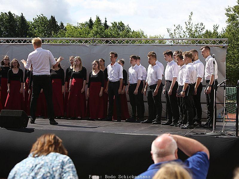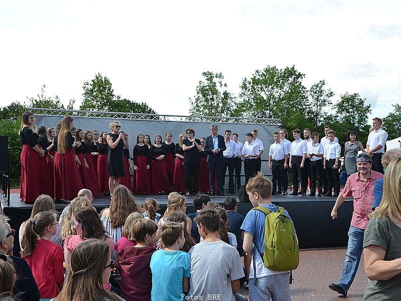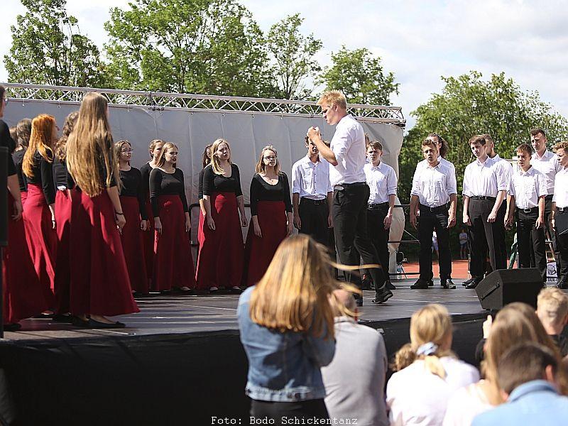 Auf das Jubiläumsfest hatten die Schülerinnen und Schüler, Ehemaligen, Eltern und Lehrenden sich an drei Tagen in über 70 Projekten unter dem Motto „Talente entdecken“ vorbereitet. Die Ergebnisse der Arbeitsgruppen wurden am Samstag auf dem gesamten GYMNO-Gelände präsentiert. Entstanden ist dabei ein buntes Potpourri aus Sport-, Tanz-, Kunst- und Musikdarbietungen. Außerdem gab es jede Menge Ergebnisse aus den Literatur- und Geschichtsprojekten, Koch- und Wanderprojekten zu bestaunen. Über die Kreativität und Ausdauer der Teilnehmer in den jahrgangsübergreifenden Gruppen kann man sich weiterhin auf dem Schülerblog unter www.gymnoblog.wixsite.com/website informieren.