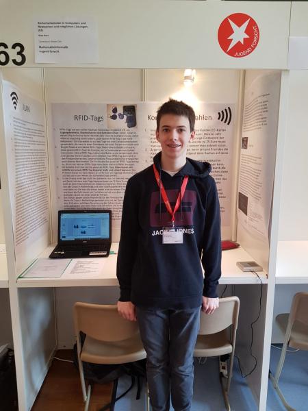 Silas Kerz (Kl. 10f) hat sich in seiner Arbeit „Sicherheitslücken in Computern und Netzwerken und mögliche Lösungen“ mit verschiedenen Hackerangriffen auf Computer und Rechnernetze beschäftigt. Er zeigt, wie leicht es ist, RFID-Tags, Heimnetzwerke und deren WLAN und Computer im Allgemeinen zu manipulieren. Aber gleichzeitig liefert er mögliche Strategien zum Schutz vor Hackerangriffen. Mit seiner Arbeit hat er den 3. Platz im Fachgebiet Mathematik/Informatik belegt und zusätzlich den Sonderpreis „Thinking safety“ erhalten.