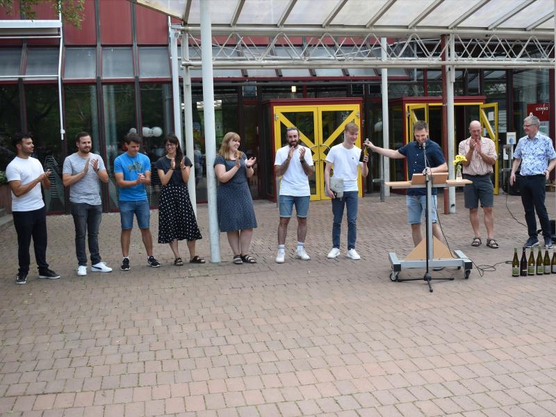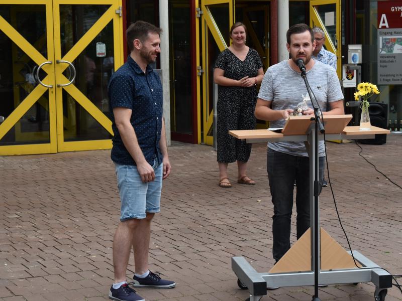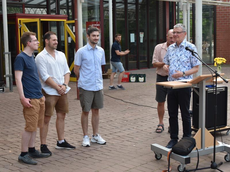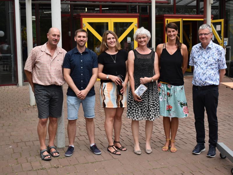 Wir verabschieden uns von den Referendar*innen, die kürzlich ihre zweite Staatsprüfung erfolgreich bestanden haben und nun an eine andere Schule wechseln: Tino Catania, Sabine Feyrer, Kevin Klee, Valentin Glasner, Jonathan Leisch und Marc Schönborn. Wir wünschen ihnen viel Erfolg an der neuen Schule und freuen uns sehr, dass Yves Hellenkamp und Sarah Braun weiterhin am Gymno unterrichten.