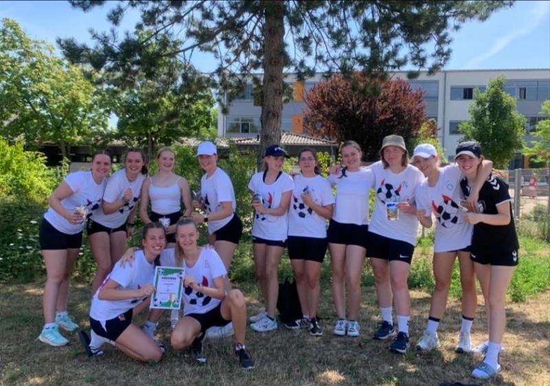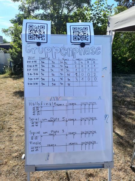 In einem getrennten Mädchen- und Jungenturnier spielten die Klassen eine Gruppen- und Hauptphase aus. Die Schülerinnen und Schüler des Leistungskurses betreuten die Teams, coachten, übernahmen die Schiedsrichteraufgaben, verkauften leckeren Kuchen und leiteten das gesamte Turnier souverän und reibungslos. Beaufsichtigt wurden die Klassen von ihren Fachlehrerinnen und Fachlehrern, doch auch viele Klassen- und Sportlehrerinnen und -lehrer kamen vorbei um „ihre“ Mädels und Jungs anzufeuern. Im Finale eines äußerst fairen Turniers besiegten die Teufelskickerinnen der 9b die Mädchen der 9f mit 2:0. Das Jungenfinale endete im Elfmeterschießen mit 4:3 für die 9a gegen die 9e. Es standen also Teams aus vier verschiedenen der sechs neunten Klassen im Finale.
