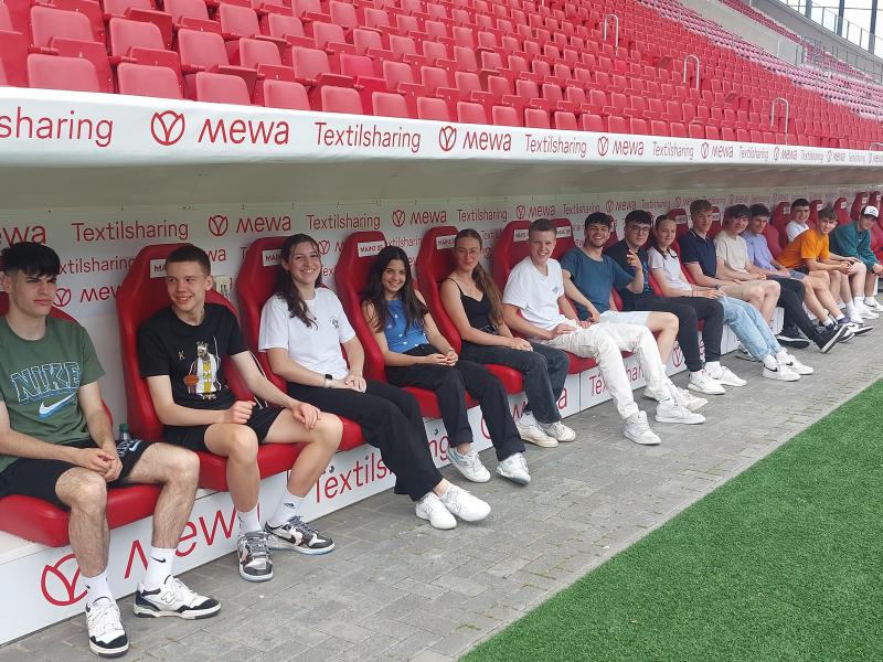 Abschließend sah sich der Kurs bei einer Führung durch die MEWA-Arena noch die Heimspielstätte der 05er genauer an. Hierbei konnten die Schüler:innen beispielsweise einen Einblick in die Heimkabine, die VIP-Lounge und den Spielertunnel bekommen.