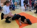 Um unsere erworbenen Erste-Hilfe-Fähigkeiten spielerisch zu wiederholen, organisierte Herr Zilles mit Frau Vervoort, unserer Ausbilderin von den Maltesern, eine Erste-Hilfe-Olympiade. Dabei teilten wir uns in zwei Teams auf und bewältigten verschiedene Stationen, die unterschiedliche Aspekte der Ersten-Hilfe abdeckten. Von Fingerverbänden über das Messen von Blutdruck und Puls bis hin zum richtigen Transport in der Ersten-Hilfe und der Reanimation – wir hatten die Gelegenheit unser Können zu zeigen und zu verbessern.