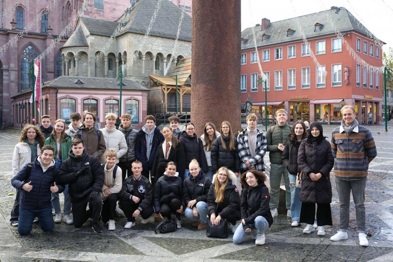 Am Mittwoch, den 15.11.2023, trafen wir uns am Haus des Erinnerns für Demokratie in Mainz. Denn statt normalem Unterricht stand für uns heute eine Stadtführung und ein Besuch im Landtag auf dem Plan.
