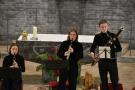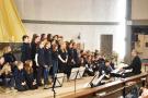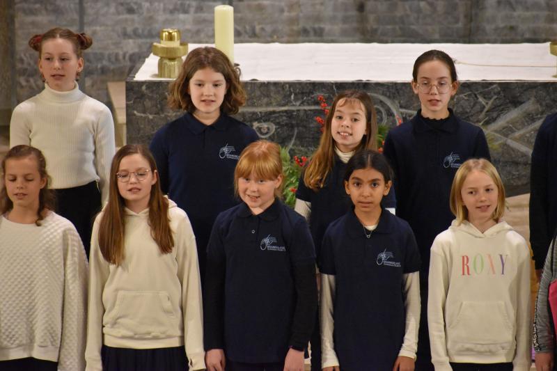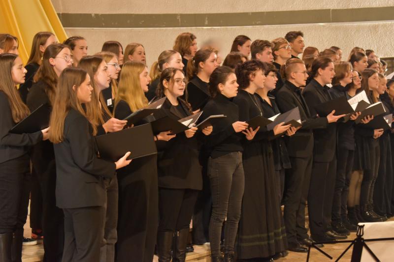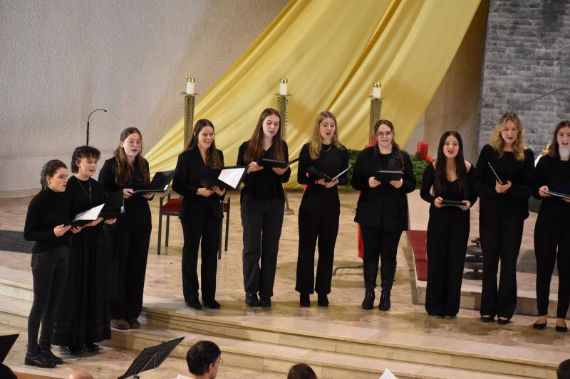 Mittwochs eröffneten dann die Gesangsklasse 6a (Leitung: Herr Bolender) und 6b (Leitung: Frau Ibata) das Konzert, die in einem bis zu dreistimmigen Gesang und einer klaren Intonation zeigten, welche Entwicklung in der Gesangsarbeit nach mehr als einem Jahr möglich ist. Die Klasse 6b präsentierte dann auch noch ein Lied mit dem Mittelstufenchor (Leitung: Frau Ibata) zusammen, welcher im Anschluss in zwei geistliche Werke mit einer herausragenden Stimmgewalt den ganzen Kirchenraum beherrschte. Der Kammerchor des Mittelstufenchores zog am Ende des Blocks noch einmal mit einem bekannten Stück der Filmmusik alle in den Bann.
