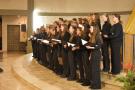 Der zweite Teil beider Konzerte wurde schließlich vom Oberstufenchor und dem Kammerchor unter der Leitung von Herrn Janson gestaltet. Der Oberstufenchor fesselte mit seinen knapp 60 Sängerinnen und Sängern durch ein abwechslungsreiches Programm aus verschiedenen Stilepochen und einem äußerst ausgewogenen und intonationssicheren vierstimmigen Gesang die Zuschauer. Der Kammerchor konnte durch seine zur Perfektion geführten Interpretation verschiedener bis zu sechsstimmiger Werke überzeugen und zeigte, dass sich intensive und konzentriere Probenarbeit in einer überaus hohen musikalischen Qualität auszahlen.