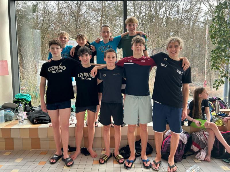 Bemerkenswert ist auch, dass wir nicht wie andere Schulen eine Mannschaft überwiegend der älteren Jahrgänge am Start hatten. Unser jüngster Schwimmer war in der 6. Klasse, der älteste in der 11. Jahrgangsstufe.