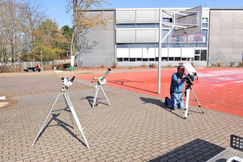 Die Schülerinnen und Schüler der Astro-AG, mehrere Physik-Kurse der Oberstufe, die Ganztagsklasse sowie viele vorbeigehende Schülerinnen und Schüler nutzten dieses Angebot nach der 6. Stunde und im Laufe des Nachmittags. Auch interessierte Lehrerinnen und Lehrer kamen hinzu.