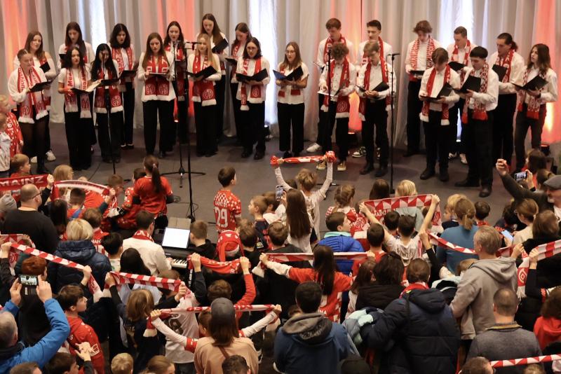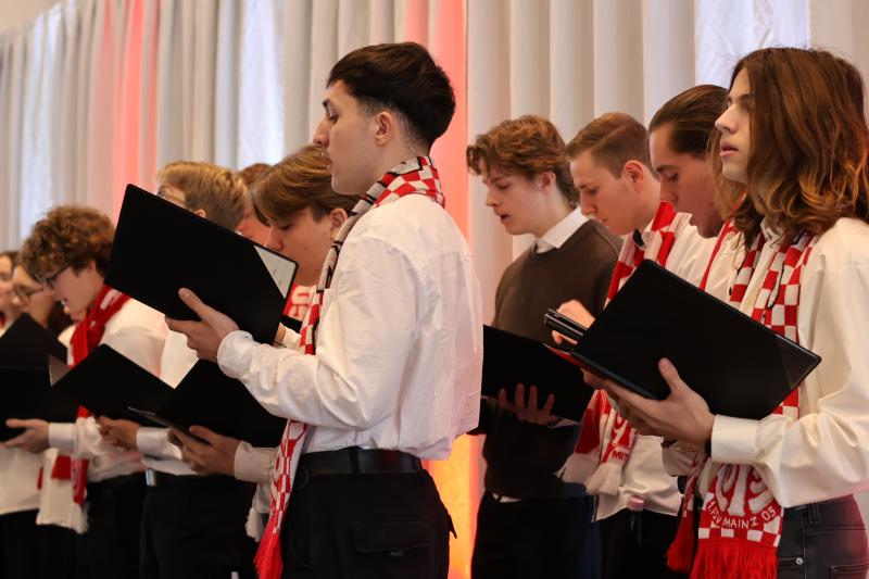 Der Kammerchor unserer Schule wurde eingeladen, die Mainz05-Kids-Weihnachtsfeier in der VIP-Lounge der Mewa-Arena musikalisch zu gestalten. Der Chor präsentierte unter der Leitung von Jonas Janson ein etwa zwanzigminütiges Programm für die rund 1500 Fans und die Spieler der ersten Mannschaft.