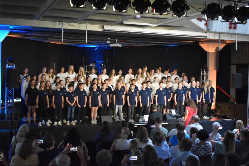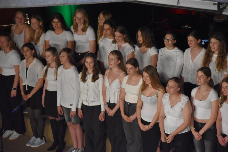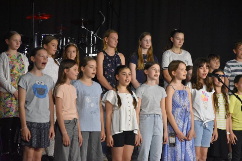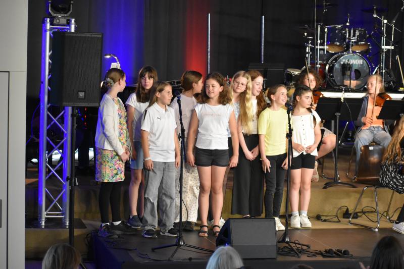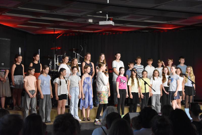 Die Gesangsklasse 5c, geleitet von Frau Ibata, war nicht nur musikalisch gut vorbereitet, sondern stand mit bemerkenswerter Bühnenpräsenz auf der Bühne. Was diese junge Gruppe an Stimmkraft, Textsicherheit und Ausdruck gezeigt hat, ließ das Publikum mehrfach aufhorchen – ein Auftritt, der in Erinnerung blieb.