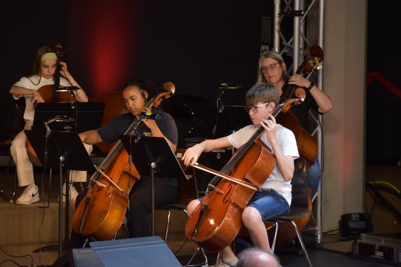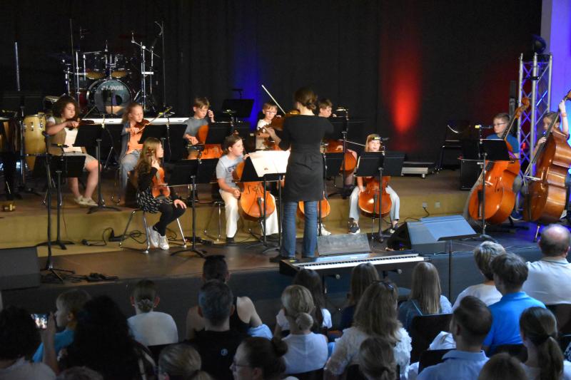 Den Anfang machte der Unterstufenchor – mit spürbarer Freude und einem Schwung, der sofort übersprang. Erstaunlich, was diese jungen Sängerinnen und Sänger bereits leisten können – dank der Leitung von Frau Voss und ihrem eigenen Elan. Die Streicher-AGs der Klassen 5 und 6 bewiesen, dass musikalisches Feingefühl keine Frage des Alters ist. Streichinstrumente verlangen Disziplin, Ausdauer und ein gutes Gehör – all das war hier zu hören. Die Leitung lag bei Frau Weber und Frau Park, die gemeinsam mit den Kindern musikalische Sorgfalt und Ausdrucksfreude hörbar machten.