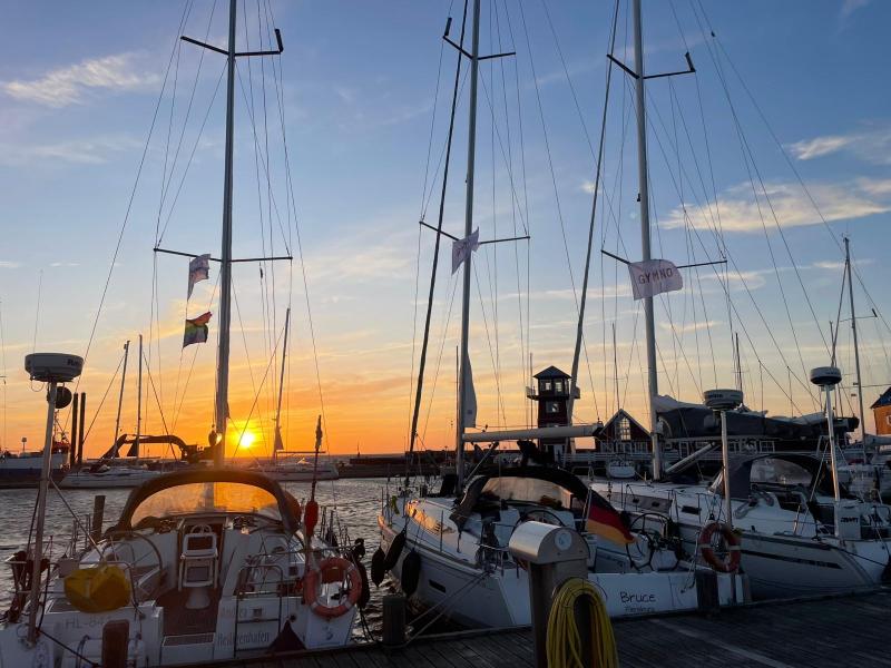 Nach der Anreise mit der Deutschen Bahn wurden die Boote bezogen, die zuvor von den Skippern übernommen worden waren. Eine ausführliche Sicherheitseinweisung bereitete alle auf verschiedene Situationen beim Segeln vor. Am Abend kochten die Teams zum ersten Mal gemeinsam – ein Vorgeschmack auf das soziale Miteinander, das den Törn prägen sollte. Der Tag klang am Strand mit Volleyball, Wikinger-Schach und einem stimmungsvollen Sonnenuntergang aus, der die Vorfreude auf die kommenden Tage nur noch steigerte.