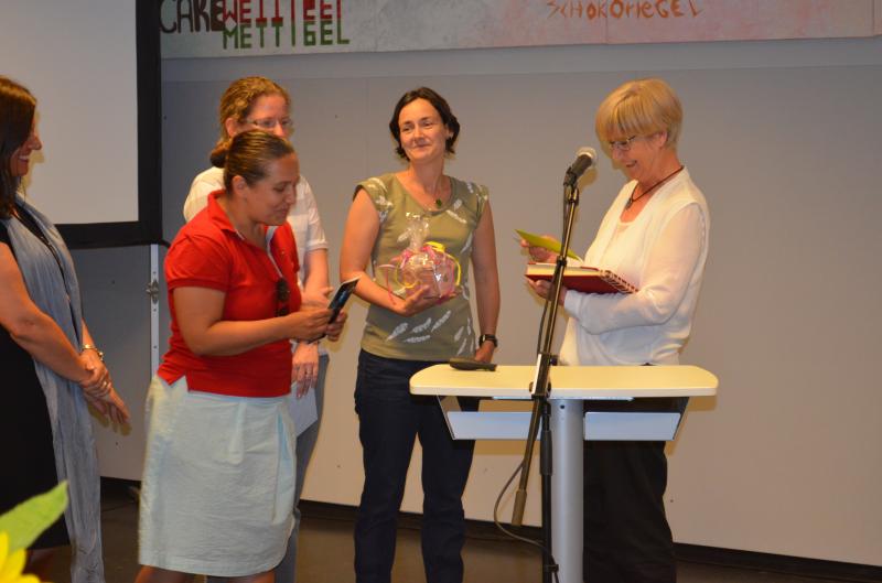 Birgit Stecker verlässt die Schule nach 30 Jahren. Sie unterrichtete Sport und Erdkunde. Durch ihre lebendige, fröhliche und pragmatische Art hat sie die Schule an unterschiedlichen Stellen geprägt. So hat sie als Personalratsvorsitzende für ein gutes Klima im Kollegenverband gesorgt und führte verpflichtend den Fair-Trade-Kaffee an der Schule ein. Dem Sport gab sie durch ihre langjährige Safer-Skating-AG einen besonderen Akzent und sie organisierte bis zuletzt die Bundesjugendspiele. Nebenher zeichnet Frau Stecker sich durch ihr gesellschaftliches Engagement als Gemeinderatsmitglied in ihrer Heimatgemeinde sowie Schöffin aus.
