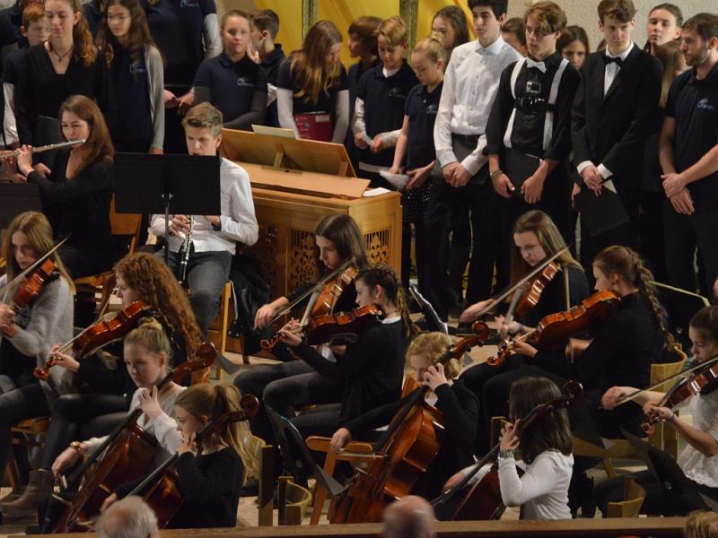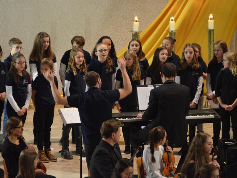 Musikalisches Highlight des Konzerts war das „Gloria“ von Antonio Vivaldi unter Leitung von Roland Bolender, welches durch die zwei erstklassigen Solistinnen Hannah Pfützner (Sopran) und Janina Kreisel (Alt) , dem Oberstufenchor, dem 8er Chor sowie dem Kammerorchester aufgeführt wurde und das Publikum begeisterte.