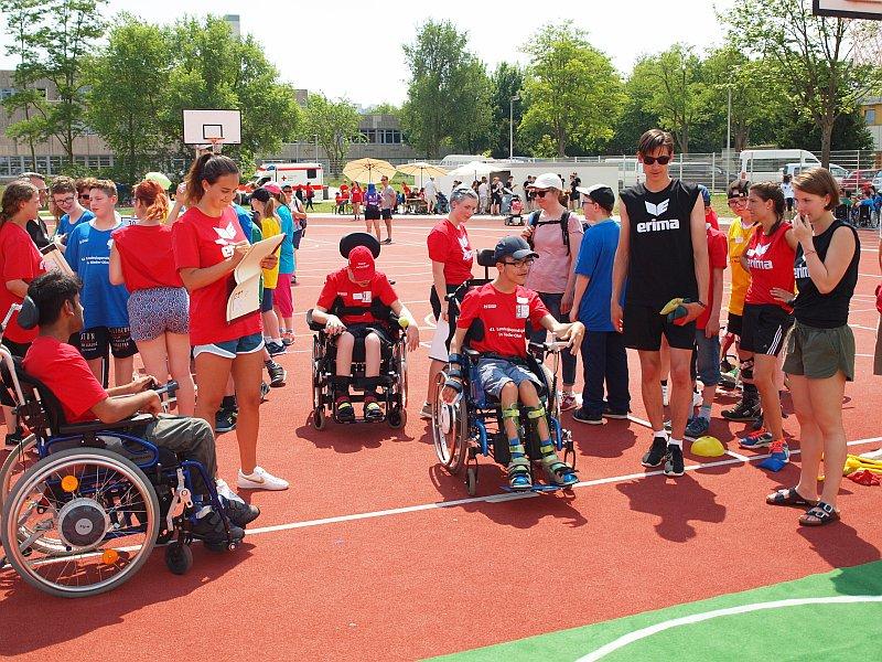 Ab 8.00 Uhr unterstützten die Schülerinnen und Schüler der Leistungskurse Sport aus den Jahrgangsstufen 11 und 12 das Sportfest. Aufbau und Betreuung von 20 unterschiedlichen Stationen gehörten ebenso zum Programm wie Improvisation bei unvorhersehbaren Ereignissen. Die ganze Leistungsbreite behinderter Athleten - darunter vielleicht künftige Paralympicsteilnehmer - konnte hier hautnah erfahren werden, traten die Teilnehmer des Sportfestes doch in 39 unterschiedlichen Behinderungsklassen an.