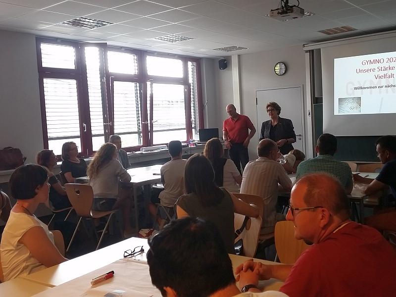 Der Begriff GYMNO 2020 will mit dem ++ Zeichen darauf hinweisen, dass die im Jahr 2014 eingeführte Diskussionsrunde weiter greift als die Jahreszahl 2020 abbildet. Die diesjährige Runde - mit Vertretern der Schulleitung, der Schülervertretung, des Schulelternbeirats, der Fachkonferenzvorsitzenden sowie des Örtlichen Personalrates und des Schulausschusses – knüpfte nahtlos und mühelos an die vorangegangenen Veranstaltungen an.