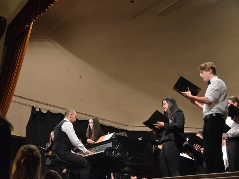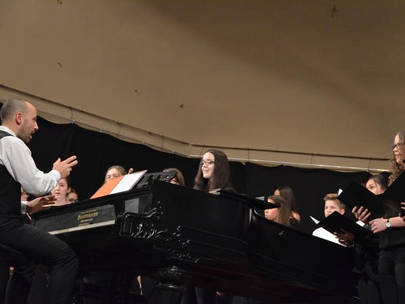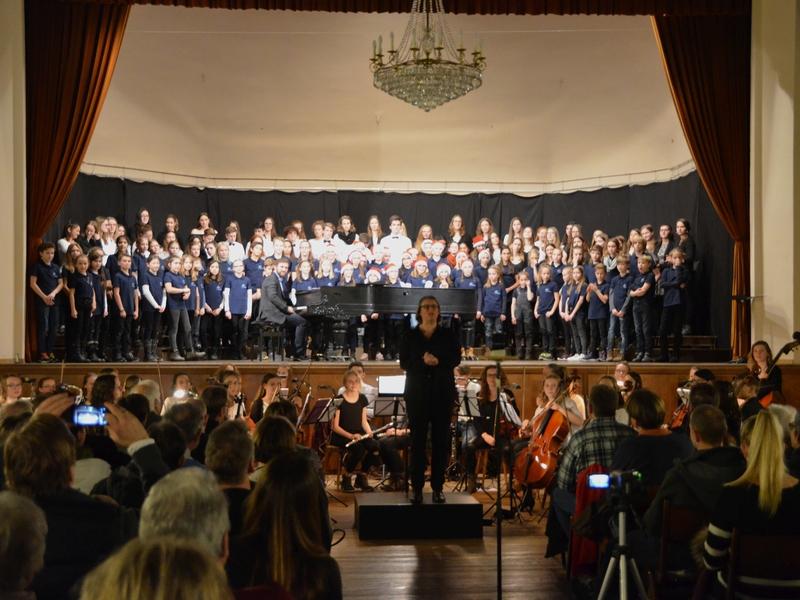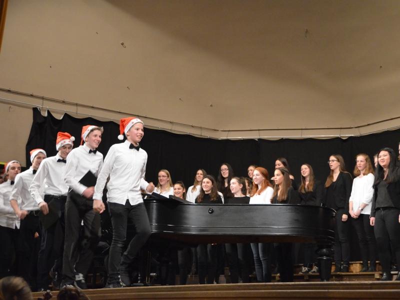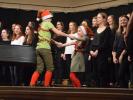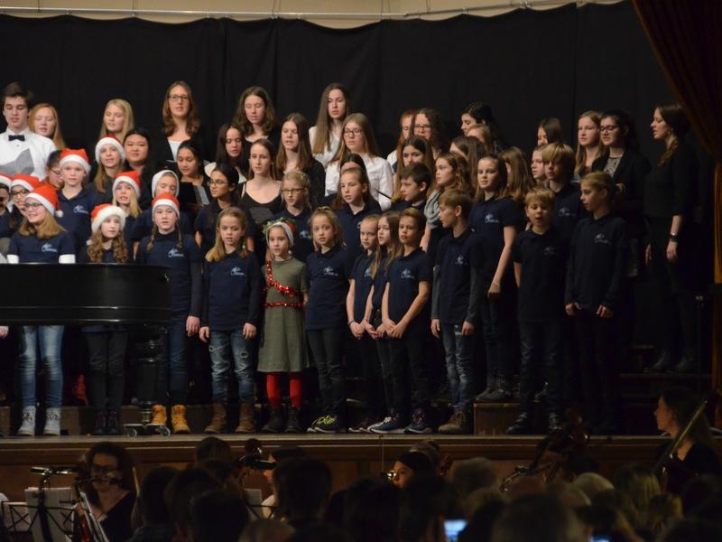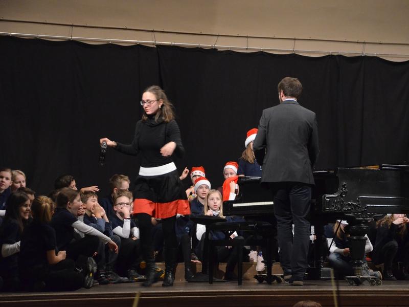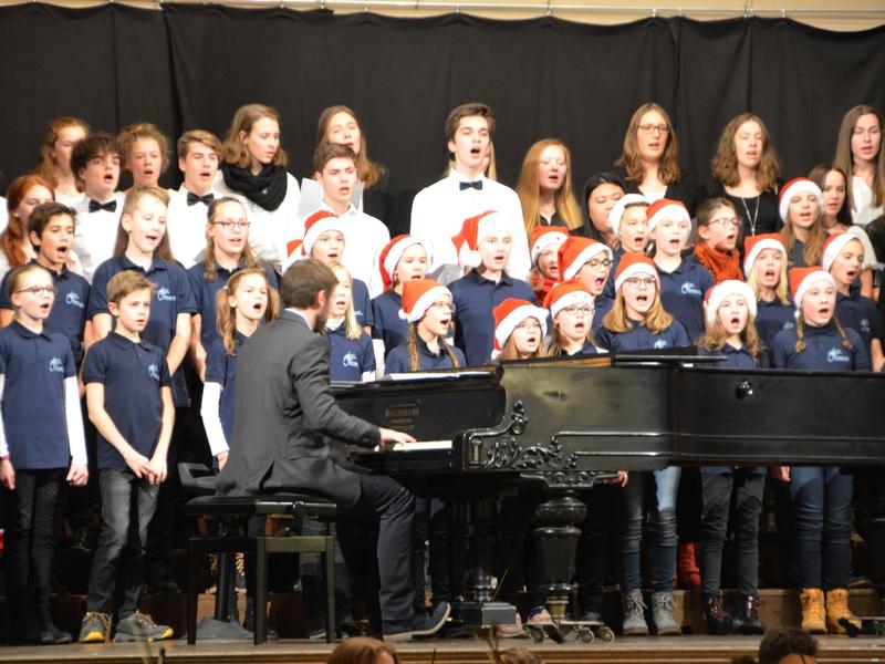 Catherine Weber hob in ihrer Moderation lobend die Unterstützung der Sängerakademie Saulheim, der Eltern und Lehrer der Mitwirkenden hervor. Sie bedankte sich bei Frau Obermann für die Dekoration und natürlich bei den Mitwirkenden: der Gesangsklassen 5a, 5b, 6a und 6b unter der Leitung von Marcel Rudszeck, Veronika Voss und Roland Bolender, dem Unterstufenchor, dem 7er und 8er Chor sowie dem Oberstufen- und Kammerchor des Gymnasium ebenfalls unter der Leitung von Roland Bolender. Ein besonderer Dank kam dem von ihr selbst und Denise Pöppler geleiteten Schulorchester zu.
