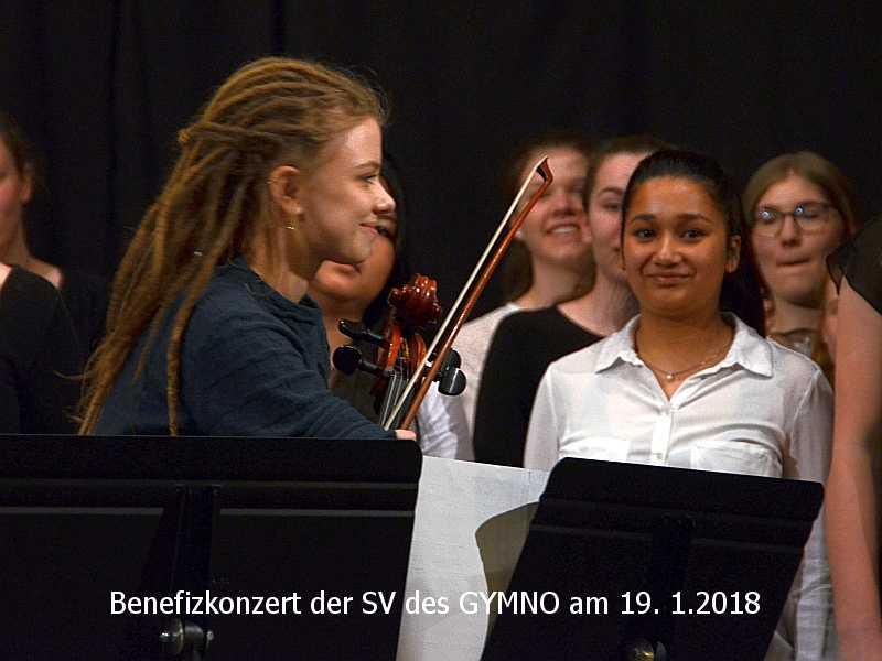 Zuvor bedankte sich das Publikum bei Leah Klussmann, der Schülersprecherin des GYMNO, für die Organisation des Konzerts mit einem tobendem Applaus. „Diese junge Frau hat ungemein viel Verantwortung für das Konzert übernommen und hat diese Aufgabe hervorragend gemeistert,“ so die Schulleiterin Frau Frey.