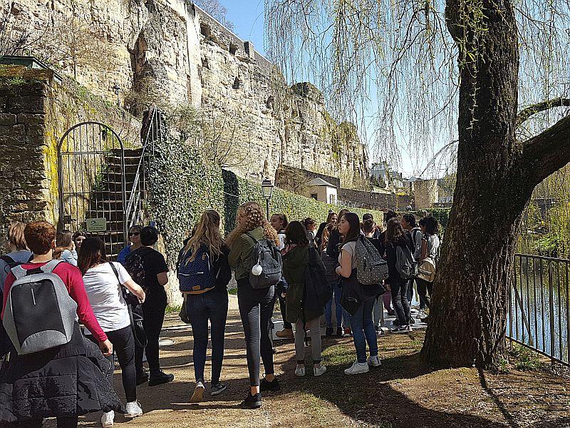 Après un voyage de trois heures en autobus, nous avons été chaleureusement accueillis par le professeur d’allemand de nos correspondants. Ils avaient préparé un petit buffet. Ensuite, nous sommes allés en cours avec eux. Plus tard, les parents sont venus nous chercher. Mardi, nous sommes allés à l’école à pied et avons eu cours jusqu’à midi. Dans l'après-midi, tout le groupe a participé à un atelier. Le lendemain, nous sommes allés à Luxembourg pour y visiter le parlement européen. Là, nous avons participé à une visite guidée. Ensuite, nous avons repris l'autobus et sommes allés au centre-ville. Là, nous avons d'abord regardé la statue de Mélusine, une sirène assise sur un rocher. La veille en cours, on nous avait raconté la légende de Mélusine. Après, nous avons eu une heure de temps libre pour faire ce dont on avait envie. Ensuite, on a joué un escape-game, un jeu d'évasion. Ça nous a beaucoup plu. Vers 17 heures, nous sommes rentrés à Uckange. Jeudi, nous sommes allés à Verdun, où nous avons pu mieux connaître l’histoire de la Première Guerre mondiale dans un petit train. C'était très intéressant. Dans la pause de deux heures, nous avons fait un pique-nique dans un parc et nous nous sommes promenés dans la belle ville de Verdun. Après la pause, nous sommes allés visiter le cimetière des soldats tombés pendant la Première Guerre mondiale. A la fin de l’excursion, nous avons visité le musée de guerre à Verdun (le Mémorial de Verdun) qui était très intéressant. Vendredi, nous avons passé la journée avec nos correspondants.