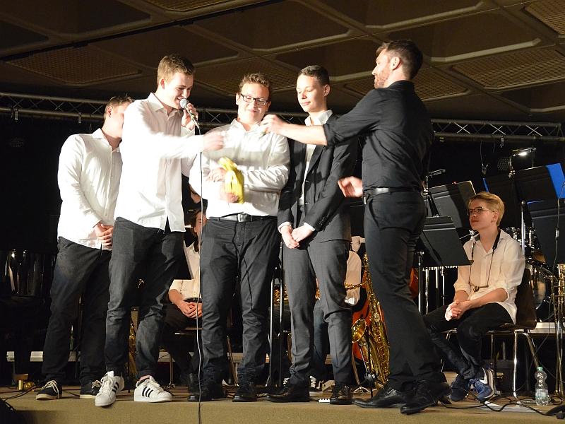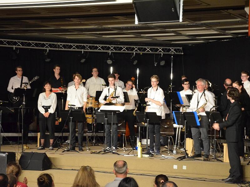 Ein Garant für die hohe Qualität sind die vielen langjährigen Band-Mitglieder aus der Jahrgangstufe 12 sowie vier Abiturienten, die sich auch an diesem Abend von der Band verabschiedeten.