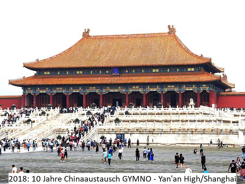 Aber auch die folgenden Tage waren von Traditionen und chinesischer Kultur geprägt. Der Besuch der verbotenen Stadt, das Regierungsviertel und schließlich auch das Klischee schlechthin, ein Fake-Market. Auch wenn dieses Image von China längst veraltet ist, gibt es sie noch immer. 5 Stockwerke voller kleiner Läden, die uns sämtliche Verhandlungsstrategien abverlangten, was einige von uns besser beherrschten, andere schlechter. Man traf sich am Ende teilweise mit demselben Produkt im Bus wieder, jedoch zu unterschiedlichsten Preisen. Zum 10. Geburtstag des Chinaaustauschs zwischen GYMNO und Yan’an High School/Shanghai durften wir die Deutsche Botschaft in Peking besuchen, wo wir über die Aufgaben einer Botschaft und über die Vor- und Nachteile des Diplomatendaseins aufgeklärt wurden.