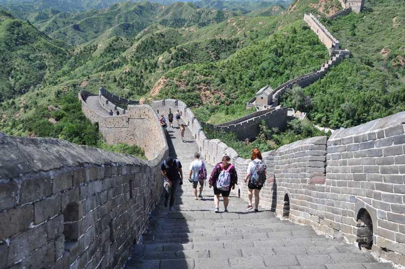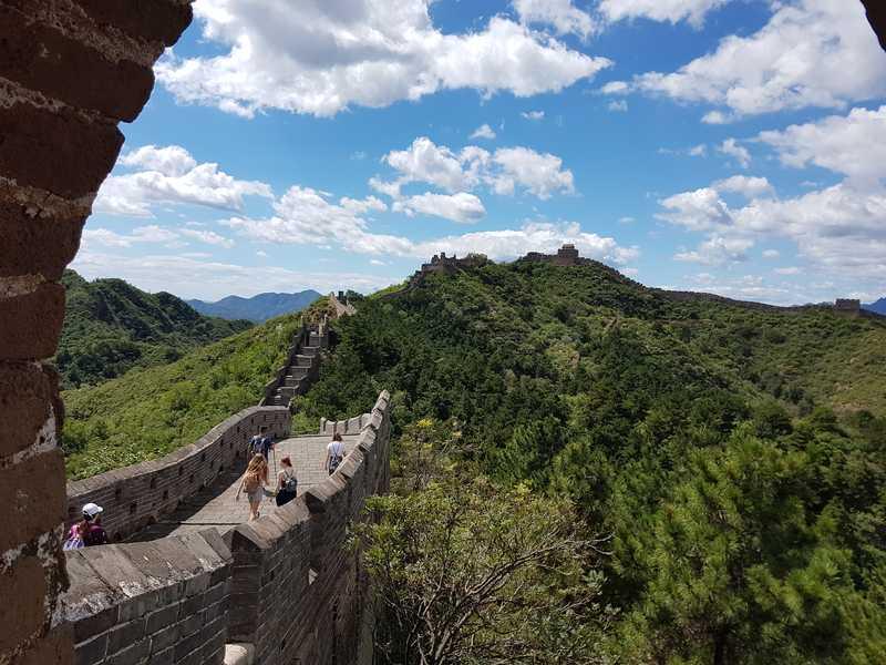 Im Kontrast zu dieser Seite Chinas stand die beeindruckende Wanderung auf der Chinesischen Mauer. Ein jahrhundertealtes Bauwerk, zusammengehalten von nicht Zement, sondern „sticky rice“- gekochtem klebrigen Reis, angemischt mit Wasser und tonnenweise zwischen das Gestein gespachtelt. Hier begleitete uns nicht nur unser Reiseführer sondern auch handgroße Gottesanbeterinnen, Raupen und… Ähnliches.