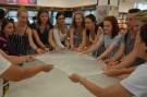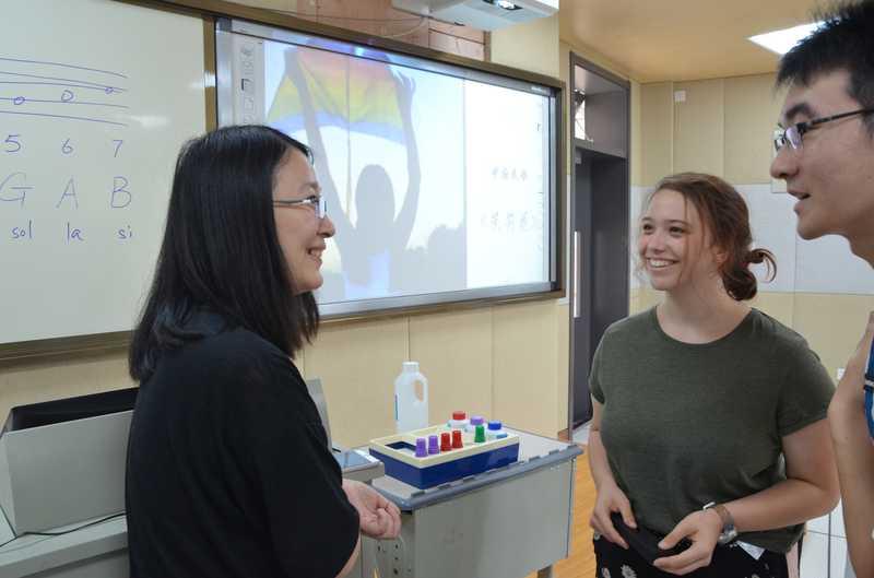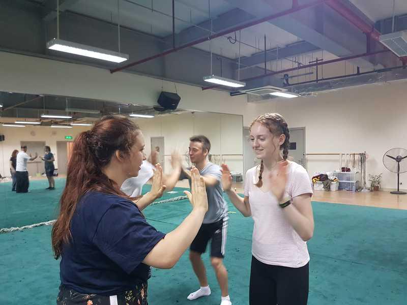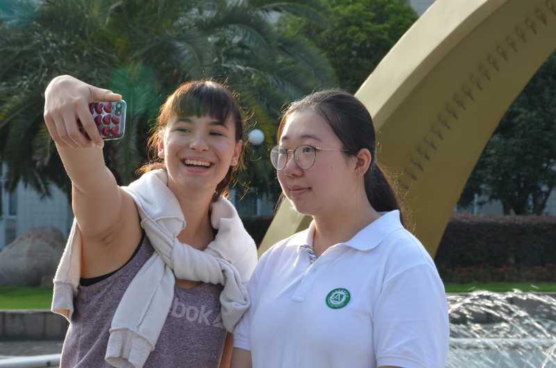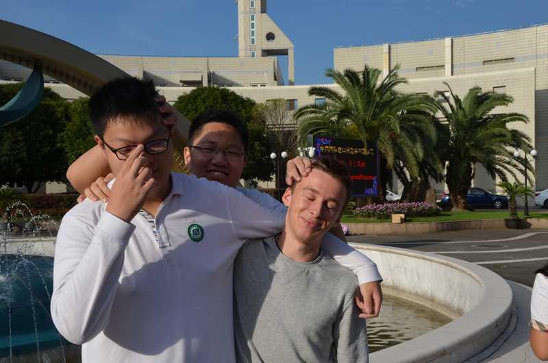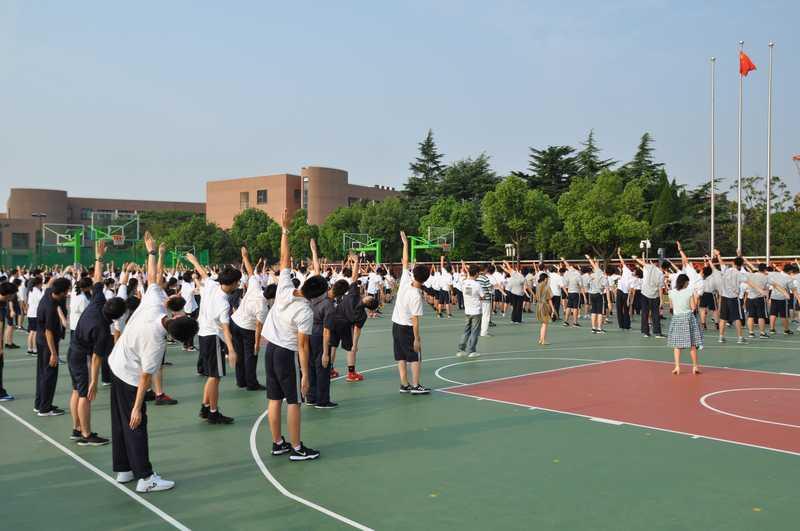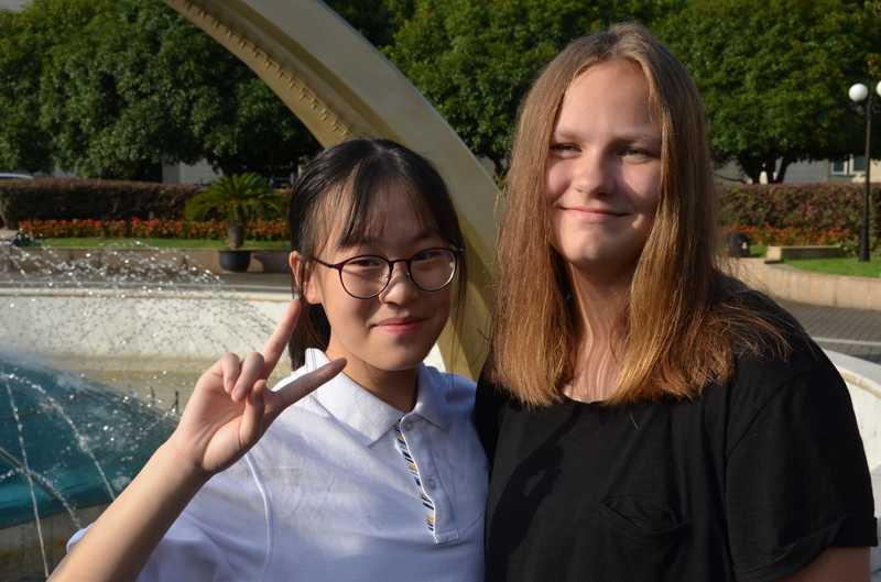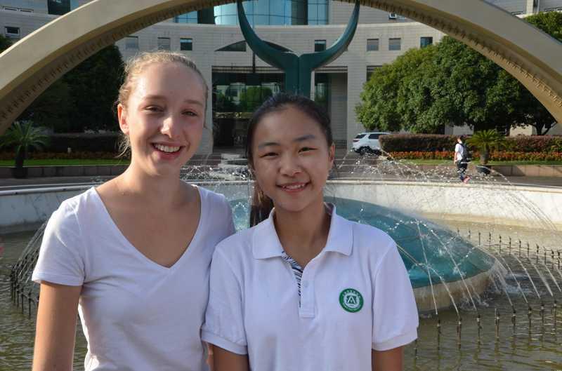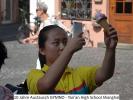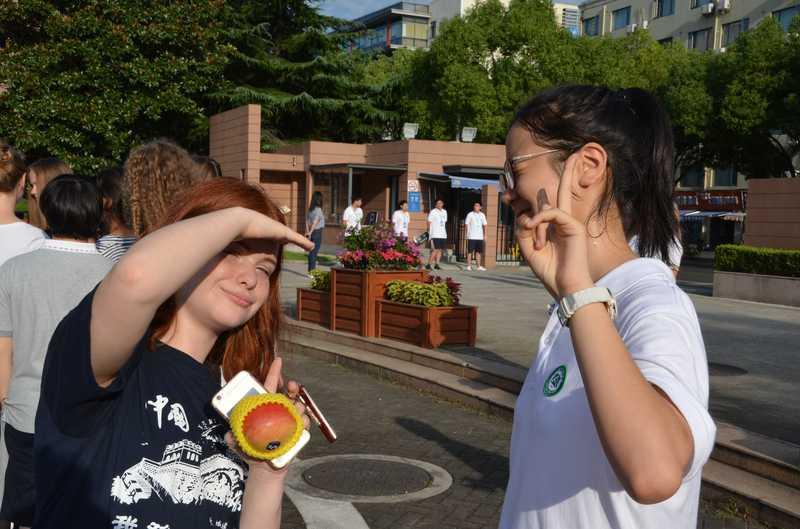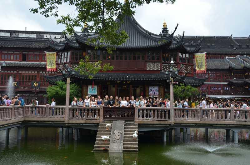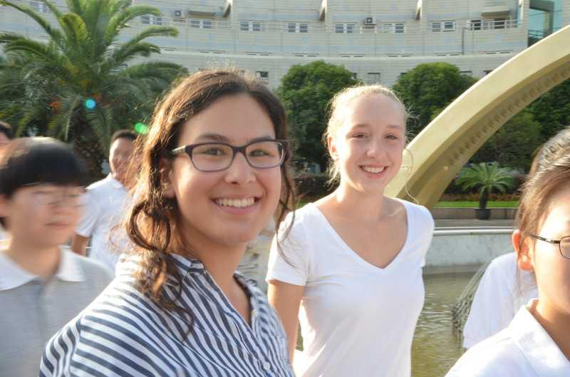 Mit dem Schnellzug fuhren wir von Peking gefühlt „einmal quer durch China“ nach Shanghai, dem Standort unserer Partnerschule. Wir trafen unsere Partnerschüler wieder, die wir bereits bei ihrem Besuch in Nieder-Olm kennengelernt hatten und verbrachten einige Tage im Internat, wo wir gastfreundlich und mit viel chinesischem Essen begrüßt wurden. Bis auf einen Tag aßen wir nie bei den Schülern, sondern in der Lehrerkantine. Wenn wir nicht gerade die Stadt erkundeten, in der Metro von 1 – 14 zählten, damit niemand verloren geht, oder Läden durchstöberten, begleiteten wir unsere Partnerschüler durch ihren Schulalltag. Dieser unterschied sich im Wesentlichen kaum von unserem. Die größte Ausnahme war hierbei wohl noch die Morning Ceremony, eine Versammlung aller Schüler und Lehrer, jeden Morgen vor Unterrichtsbeginn um 7 Uhr morgens. Alle tanzten gemeinsam, wärmten sich auf und auch uns wurde die Choreografie beigebracht. Das Flaggenhissen in Uniform, untermalt von Musik hatte eine enorm beeindruckende Wirkung.