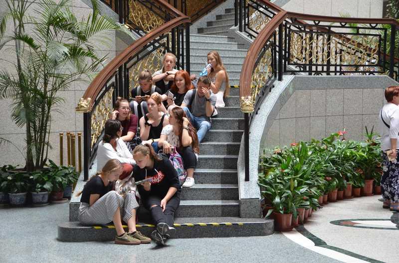 Am 1. August stiegen wir, 11 Schülerinnen und 1 Schüler, mit unseren Begleitern (Frau Meyer und Herr Breuer) in den Flieger. Nächster Halt, Peking, Airport. 9 Stunden Flug. Unsere Lehrer hatten verständlicherweise einen Sitzplatz außer Hörweite gebucht, denn für uns war der Flug wie die wohl längste Busfahrt einer Klassenfahrt, die wir je hatten. Nach besagten neun Stunden Flug standen wir also am Flughafen Peking, gespannt und aufgeregt mit großen Augen und ganz viel Planlosigkeit.